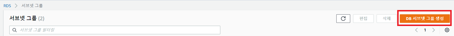 파라미터 그룹 위에 있는 서브넷 그룹을 선택하고 DB 서브넷 그룹 생성을 눌러주자